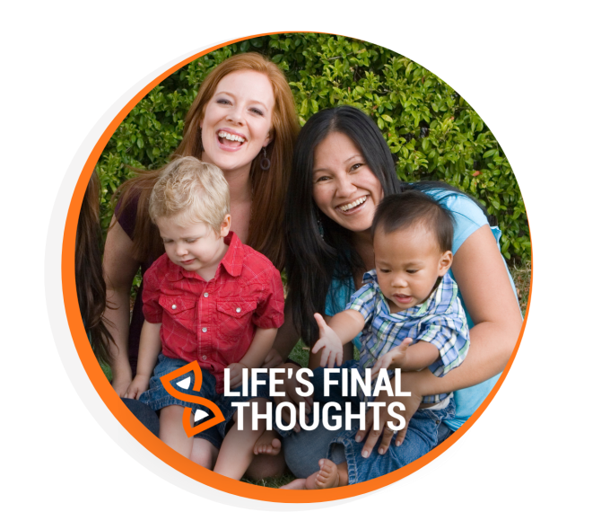 When you’re a mom, you always want what’s best for your children. What if you were no longer around to guide them? With Life’s Final Thoughts you can preserve your love, wisdom and voice through video messages that release upon your passing. Share advice for tough times (we all have them!), wisdom about relationships, dating, school and more. Share stories about your children and thoughts about what you wish for their futures! Even family secrets or family recipes make great videos!